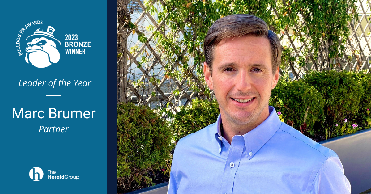 The Herald Group is proud to announce Partner, Marc Brumer, has won the 2023 Bulldog PR Leader of the Year Bronze Award.